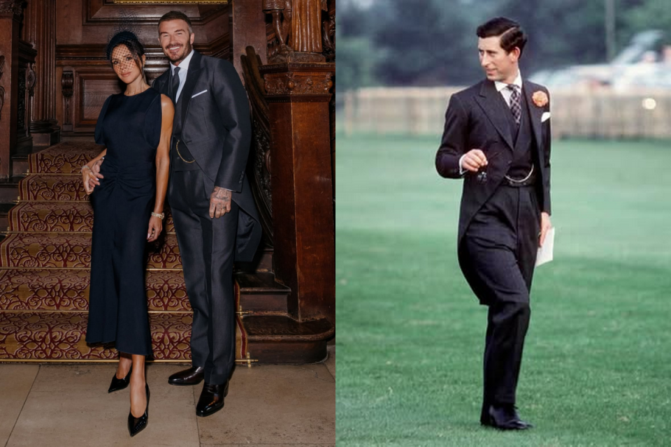小贝这次身穿英国羊毛、马海毛材质三件套晨礼服,是Victoria Beckham的首款男士定制服饰,由贝嫂亲自设计,造型致敬英国王室风格的永恒优雅。