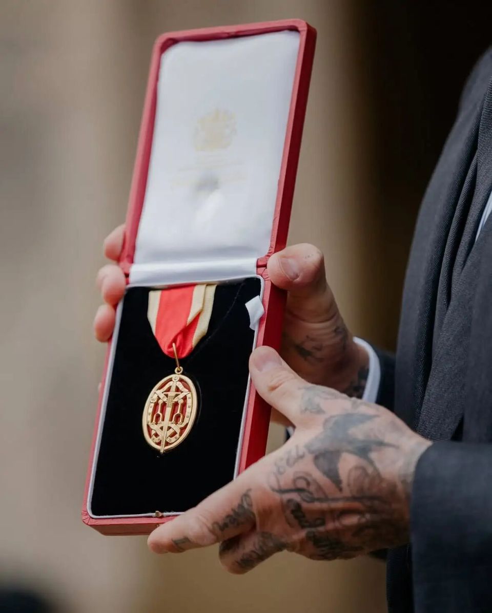 小贝今年6月入选国王生日授勋名单,最近他如期来到在温莎城堡举办的授勋仪式,正式接受查尔斯册封骑士勋衔~