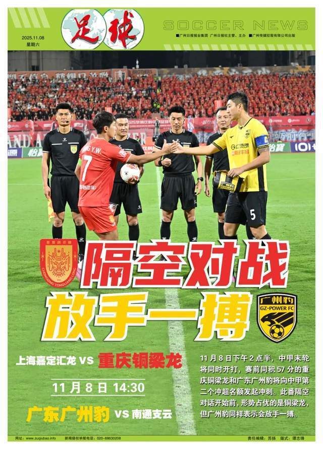 记者王伟、鲁蜜报道 11月8日下午2点半,中甲第30轮即收官战同时进行,同积57分的广东广州豹将和重庆铜梁龙为第二个冲超名额隔空对阵,形势占优的是铜梁龙,但广州豹上下表示会放手一搏。