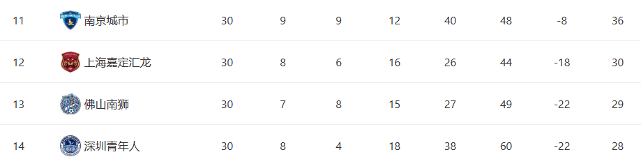 末轮对阵无欲无求的山西联合,广西半场就0—2落后,保级直接来到地狱难度。虽然下半场他们成功扳回一球,但随后就在防守端彻底崩盘,最终广西1—5惨败对手。而他们直接的竞争对手深圳,则是在主场2—1小胜倒数第一的青岛队,成功完成保级。