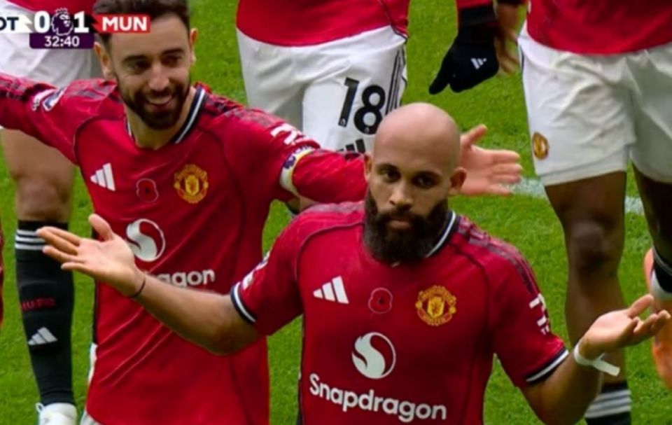 第32分钟,热刺禁区内解围失误,曼联原地组织进攻。阿玛德在右路得球,原地摆腿传中。姆伯莫在两个人的防守下,抢点头球,成功破门!1-0!曼联取得领先。进球后,姆伯莫摊开双手,霸气庆祝。