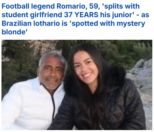 到了59岁,罗马里奥依旧追求年轻漂亮女孩,不过这次,媒体报道的是罗马里奥分手——他与相恋1年的巴西女大学生阿利西娅-戈麦斯(Alicya Gomes)劳燕分飞。