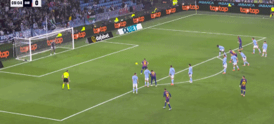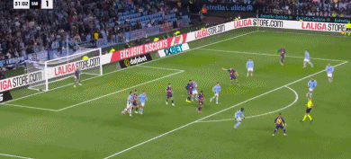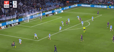 第11分钟,博尔哈-伊格莱西亚斯分球,卡雷拉长途奔袭低射打入球门远角,1-1。