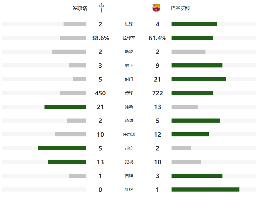 塞尔塔(3-4-3):拉杜;马努-费尔南德斯(78'罗芒),斯塔费尔特,马科斯-阿隆索;明格萨(46'哈维-罗德里格斯),索特洛(78'阿卜德拉韦),莫里巴,卡雷拉;胡特格拉(58'萨拉戈萨),博尔哈-伊格莱西亚斯(70'阿斯帕斯),杜兰