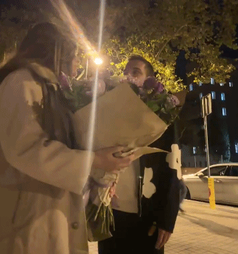 在巴塞罗那街头,一对情侣自拍秀恩爱。女子手捧鲜花,笑靥如花。男子搂着爱人,同样是笑容满面。突然,男子发现路边似乎有熟悉的面孔经过,回头一看,有些发愣。