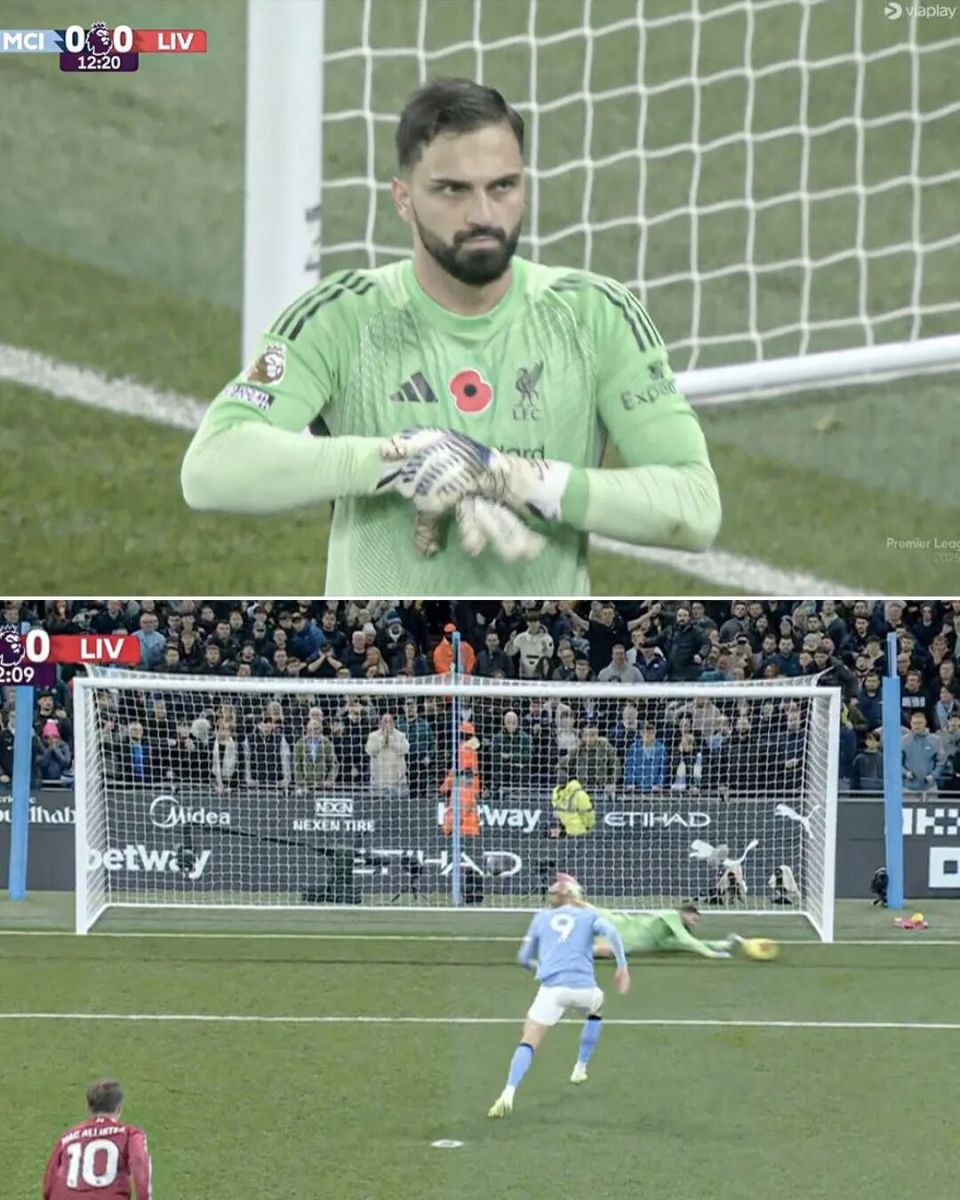 上半场第12分钟,多库突入禁区造点,裁判在经过VAR回放之后,判罚点球,可惜哈兰德主罚的点球被利物浦门将扑出。