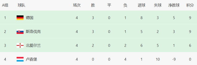 德国、斯洛伐克均是9分,竞争激烈。还剩2场比赛,一切皆有可能。11月17日晚上(均是当地时间,下同),德国vs斯洛伐克之战,很有可能决定谁是小组第1,从而获得直通世界杯的资格。
