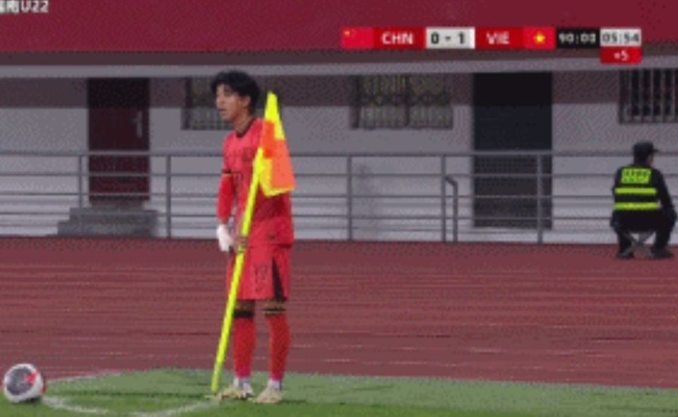 离大谱!U22国脚拔掉角旗杆吃黄牌,又默默将旗杆插了回去