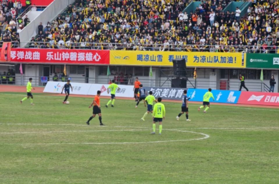 第81分钟,乐山队利用点球扳回一球。比赛最后时刻,乐山队利用角球的机会上演绝平。3-3!最终,凉山队只能在主场拿到1分。比赛结束后,主场的凉山球迷在看台上集体高喊“黑哨”。