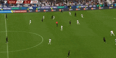 半场补时第2分钟,鲁本-迪亚斯被拉倒制造点球,B费点射破门,葡萄牙5-1亚美尼亚。