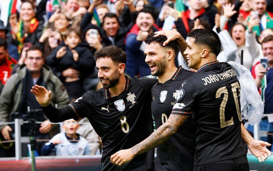 这一个比赛日,葡萄牙回到主场,迎来了世预赛收官之战,对阵小组垫底的亚美尼亚,本场比赛葡萄牙在C罗红牌停赛的情况下,在主场爆发出了惊人的进攻火力,B费和若昂内维斯双核均上演帽子戏法,贡萨洛拉莫斯也传射建功,在三人的率领下,葡萄牙9-1血洗亚美尼亚。