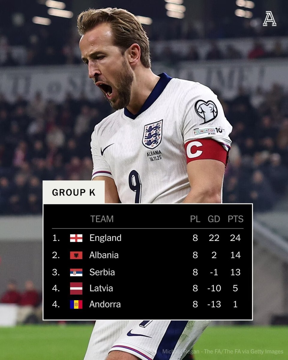 北京时间11月17日,2026年世界杯欧洲区预选赛K组第10轮,英格兰客场2-0击败阿尔巴尼亚,8战全胜完美收官!凯恩梅开二度。