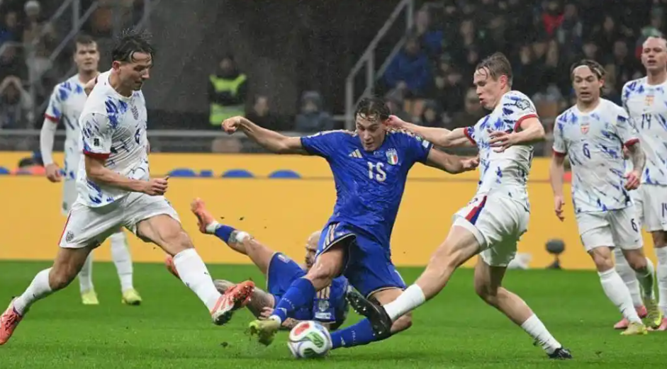 上半场的前半段,意大利还算是斗志昂扬,但当挪威打入两球后,他们便如泄气的皮球般彻底放弃。最终他们1—4惨败挪威,遭遇对手双杀的同时,只能去参加三月份的附加赛。