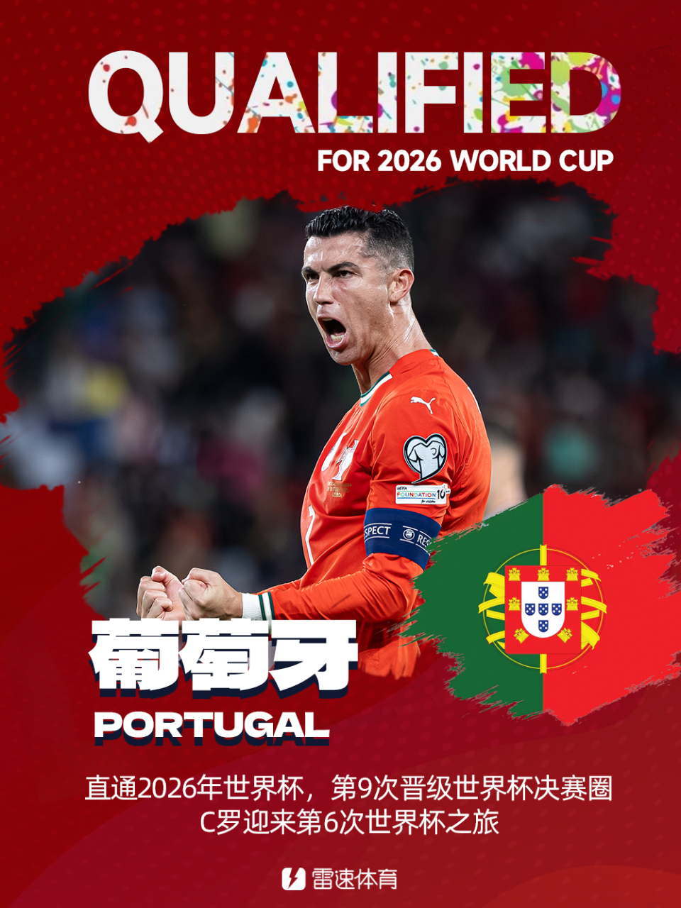雷速体育11月16日讯 北京时间今日,葡萄牙大胜亚美尼亚以F组第一的成绩成功挺进2026年世界杯。葡萄牙也是世界杯欧洲区预选第4支,全球第31出线的球队。