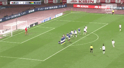 第23分钟,日本队右肋连续打出配合后下底传中,南野拓实头球攻门,皮球被门将扑了一下后击中横梁。