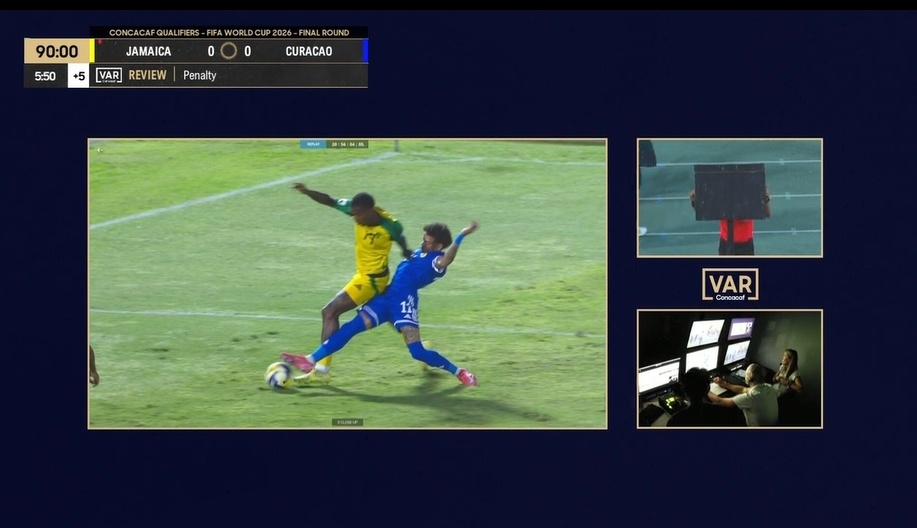 本场比赛前,库拉索领先牙买加1分。本场直接交手,只要保证不败便能直通世界杯。常规时间,双方战成0-0。最后时刻,主裁曾压哨判给牙买加点球,不过库拉索球员愤怒抗议,主裁在查看VAR后也选择取消点球判罚。