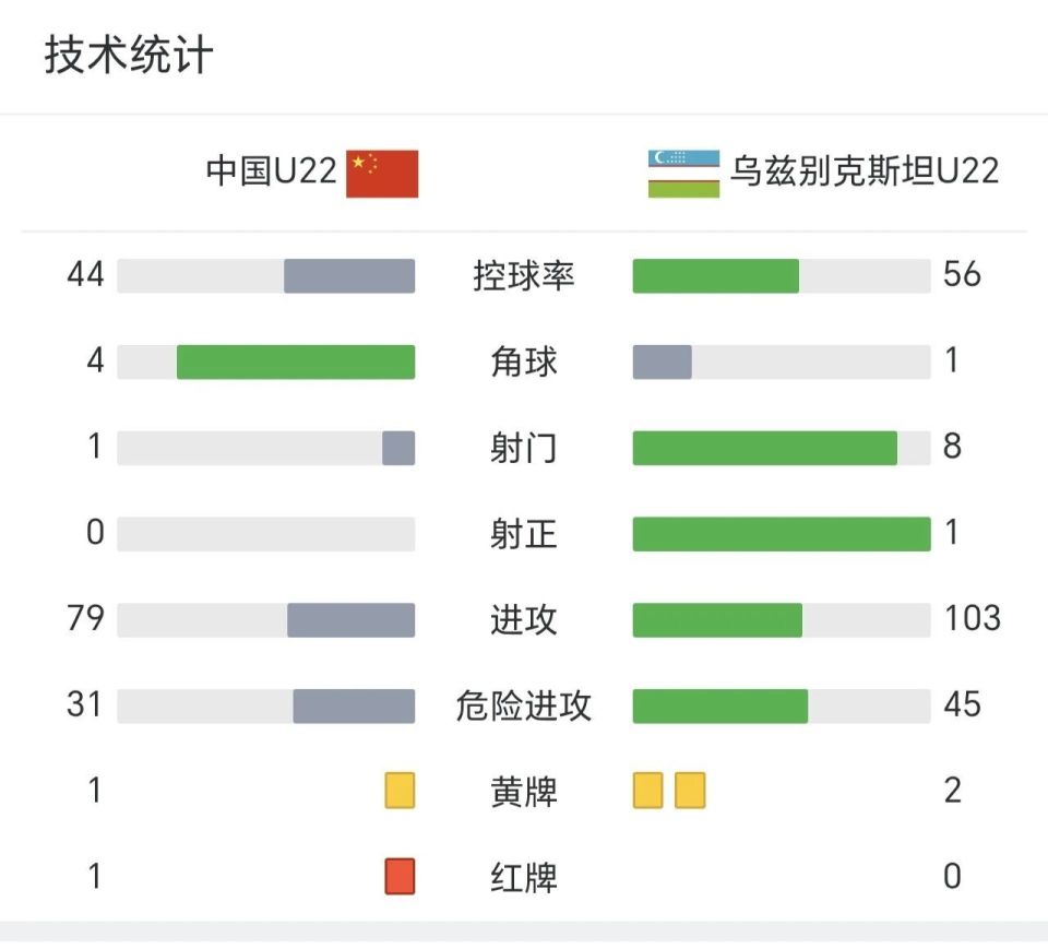 情绪失控!汪士钦上场仅7分钟就直红离场,中国U22全场1脚射门0射正!
