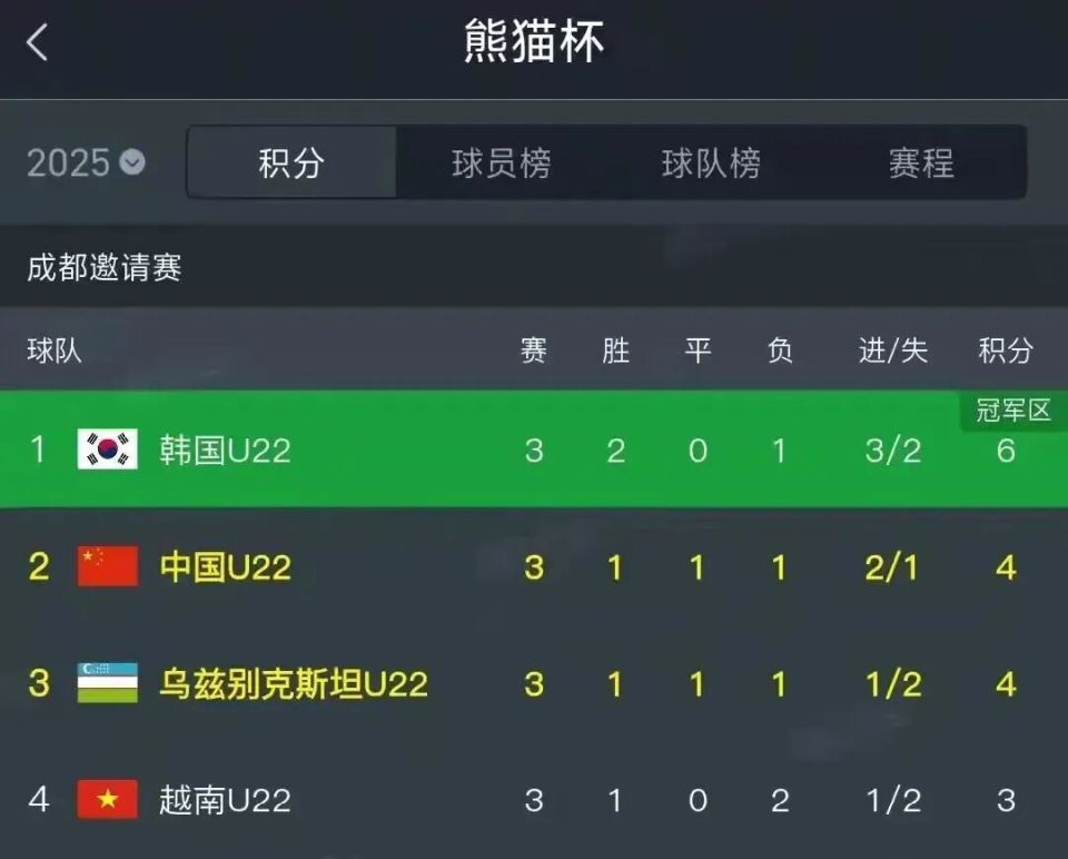 北京时间2025.11.18 随着戴弋戈的一声哨响,本次熊猫杯落下帷幕!国足U22 0:0战平乌兹别克斯坦U22。以净胜球的优势,夺得了本次熊猫杯的亚军!回顾本场比赛,中国U22 面对实力不俗的乌兹别克斯坦U22依旧排出了5-3-2,只是相对于上场比赛,安东尼奥更换了大部分首发!但是上半场的战术,大博我是真没看懂。又是主动让出控球权,伺机寻找反击机会,这一点与上一场2:0战胜韩国U22相同,但是不同的是,乌兹别克斯坦的5-4-1防守让中国U22没有寻觅到一点机会,全场比赛仅1脚射门,0射正!此役面对乌兹别克斯坦U22,上半场比赛中国U22反击毫无威胁,以至于上半场连一脚射门都没有,安东尼奥练兵没有问题,问题是,你的战术是什么,三中位的乌兹别克斯坦防守时收的很紧,反击第一点给朱鹏宇没问题,朱鹏宇身旁没有一个人策应,怎么打,前场逼抢可以,蒯纪闻多次鼻逼抢成功,发现身旁没有队友!无奈的蒯纪闻还是爆了粗口!半场结束,安东尼奥做出调整,用王博豪换下蒯纪闻,但是不是以速度见长的王博豪也第一是了几次绝好的机会,64分钟,中国U22再次做出换人调整,用汪士钦和伊木兰换下玄智健和毛伟杰,70分钟用鲍世蒙,木塔里甫,拜合拉木换下杨希,杨皓宇,陈泽士!我就想问一下,小兄弟你这么冷吗,一会跑起来脖子不会起痱子吗?先是拔角旗杆!然后戴个大围脖子,球没看你踢得多好,两场比赛下来可以当网红了!闹剧还没有结束,71分钟汪士钦!!!爆推对手,当场被戴弋戈送了一张红宝石卡!让他回更衣室冷静冷静!从上场到离场,用时仅7分钟!汪士钦再次用精彩的表现让球迷们错愕!只有你想不到,没有我做不到!第一场比赛的失误大博还没说什么,毕竟没有哪个球员运动生涯没有失误的时候。赛后被抨击的小肚腩,长头发,染指甲,说汪士钦不职业。大博也认为没什么,球员也是人,我们不能用道德绑架他。但本场比赛情绪失控,不顾球队处境!这是一个职业球员的做法吗?未免也太不职业了。这个时候汪士钦的支持者肯定会说,谁谁谁怎么怎么样,为什么你就看汪士钦不顺眼,那么我想说,纵观足坛有个性的球员有很多,但是你为什么不看看人家是什么水平,而你自己是什么水平,技术不及人家十分之一,脾气大得很,个性强的很,你有什么资本呢?丁旭更是怒不可遏:“什么臭毛病啊?不想踢就永远别进国字号!纯惯的!这是代表中国,置全队利益于不顾。”