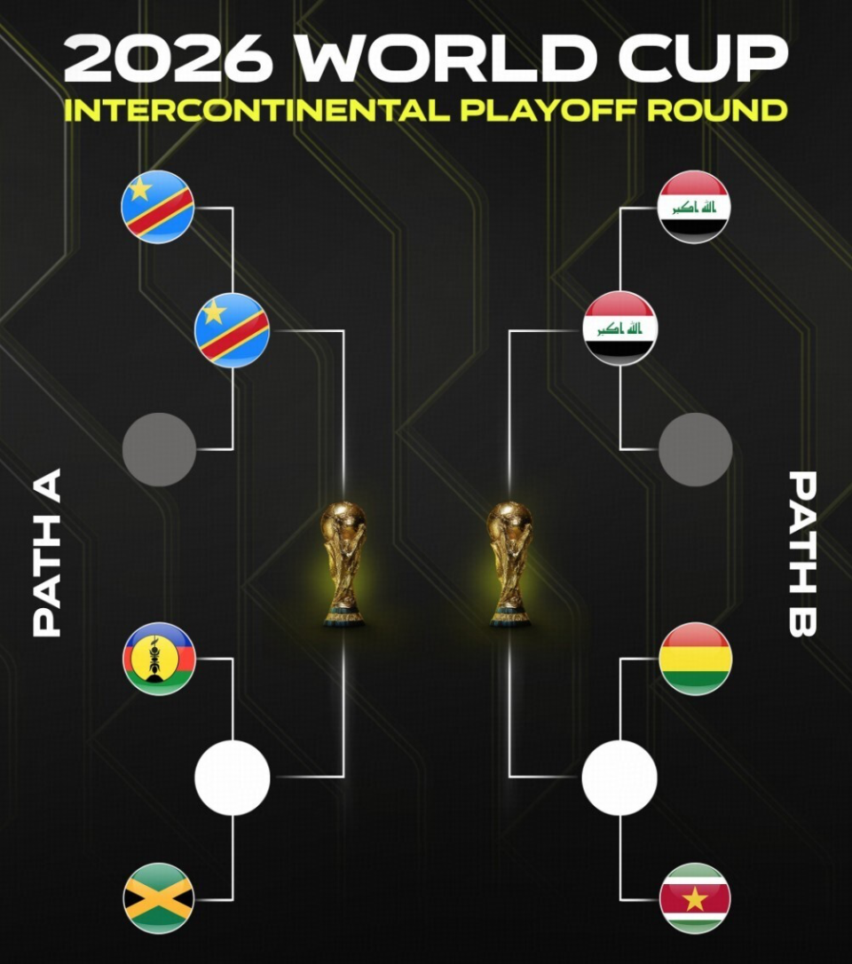 世预赛跨洲附加赛对阵(每条路径产生一个世界杯正赛名额)