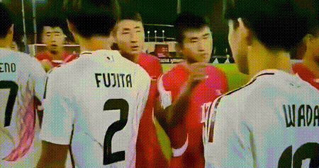 比赛开始前,双方球员按照惯例进行击掌环节。朝鲜球员站在原地,日本球员则是依次从他们面前经过并击掌。让人意外的是,朝鲜球员并没有张开手掌,而是紧握拳头。当日本球员伸手试图击掌的时候,朝鲜球员纷纷狠狠地将拳头砸在对手的手上。