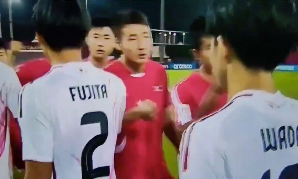 争议!朝鲜球员击掌时恶狠狠暴捶日本球员 日本足协要求FIFA严惩