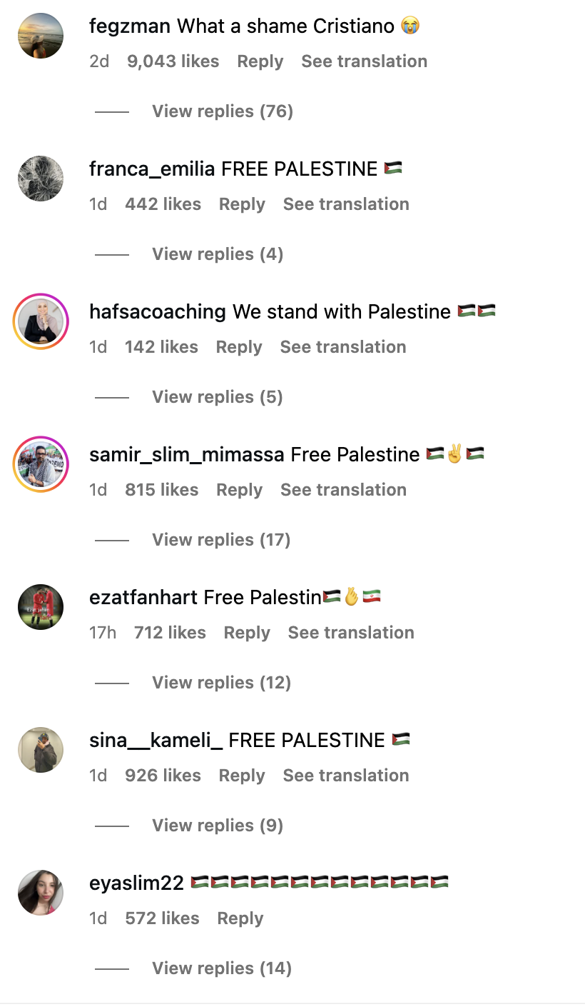C罗和他的家人明显低估了事件的敏感性,如果门德斯在,还能允许C罗这般天真下去吗?C罗在沙特,应该对中东局势有些了解。沙特等逊尼派国家现在是强力摁着民众的不满,去和以色列进行媾和,而逊尼派国家民众对同为穆斯林兄弟被狂轰滥炸和种族屠杀非常痛心,恼怒逊尼派政府不作为。同时,欧美媒体也不满意,纷纷集火开炮,嘲讽C罗是沙特外交工具和洗白工具。