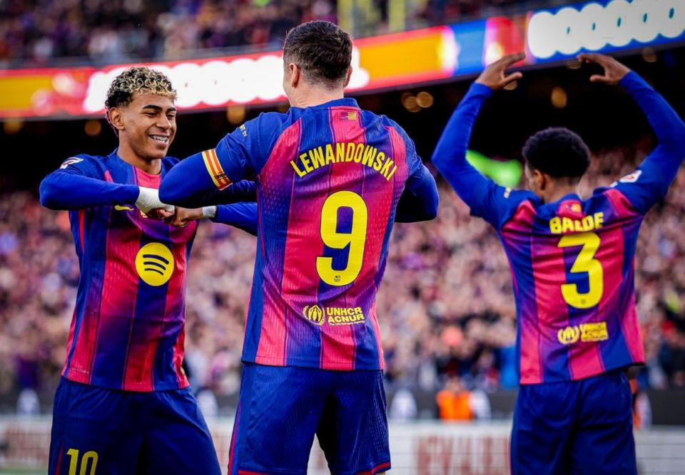 诺坎普呼唤梅西!莱万闪击亚马尔天秀助攻,巴萨4-0登顶西甲第1