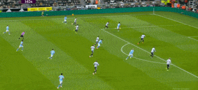 第13分钟,纽卡右边路传中到小禁区前,曼城前点漏人,沃尔特马德甩头攻门被多纳鲁马飞身倒地扑出。