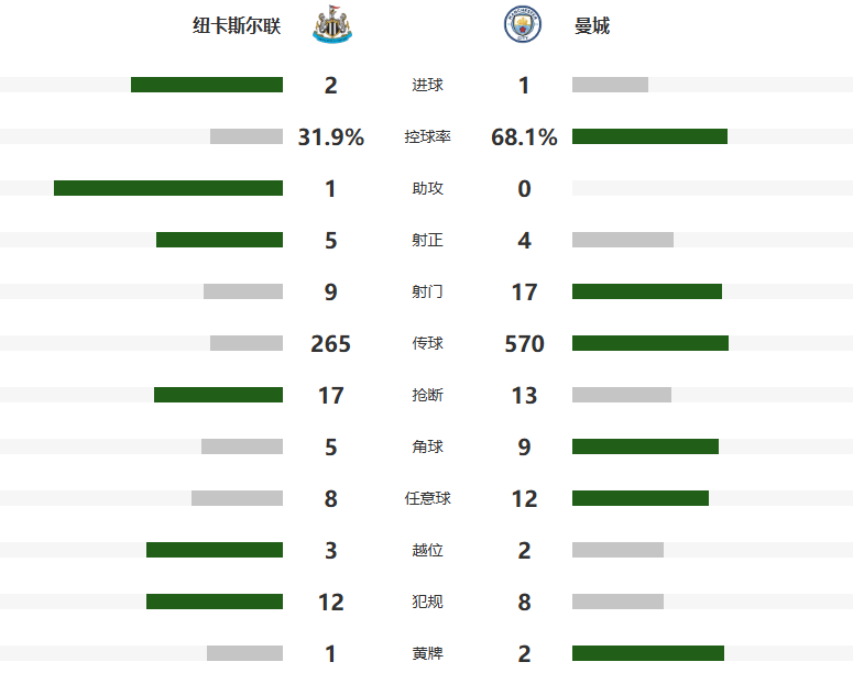 英超:曼城1-2纽卡落后榜首4分 巴恩斯双响,多纳鲁马连献神扑