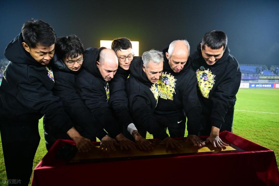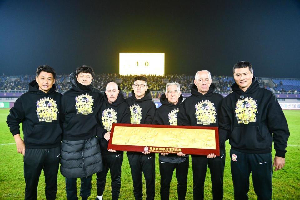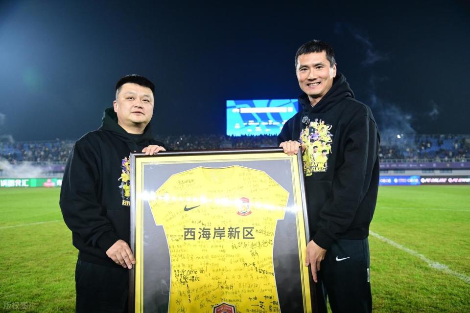 但这一晚的真正焦点并非比赛本身,而是赛后的温情时刻——青岛西海岸俱乐部为已荣升国家队新任主帅的邵佳一举行了特别的欢送仪式。全场球迷唱响《再见》,用一句句满含情感的歌词诉说着对邵佳一的不舍与祝福。