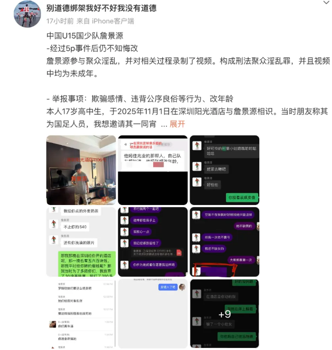 网传U15国足前锋改年龄、赌球,与未成年人5P并出轨32岁空姐