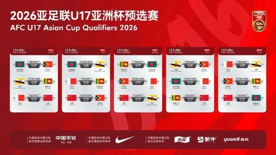 北京时间11月24日,U17亚洲杯预选赛小组赛A组第2轮,U17国足14-0大胜东帝汶,取得两连胜,排名升至小组第一!