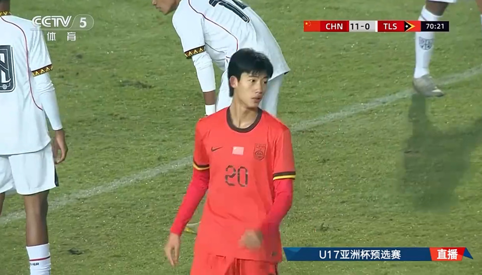 北京时间11月24日19:35,U17亚洲杯预选赛第二轮中国17-0东帝汶。