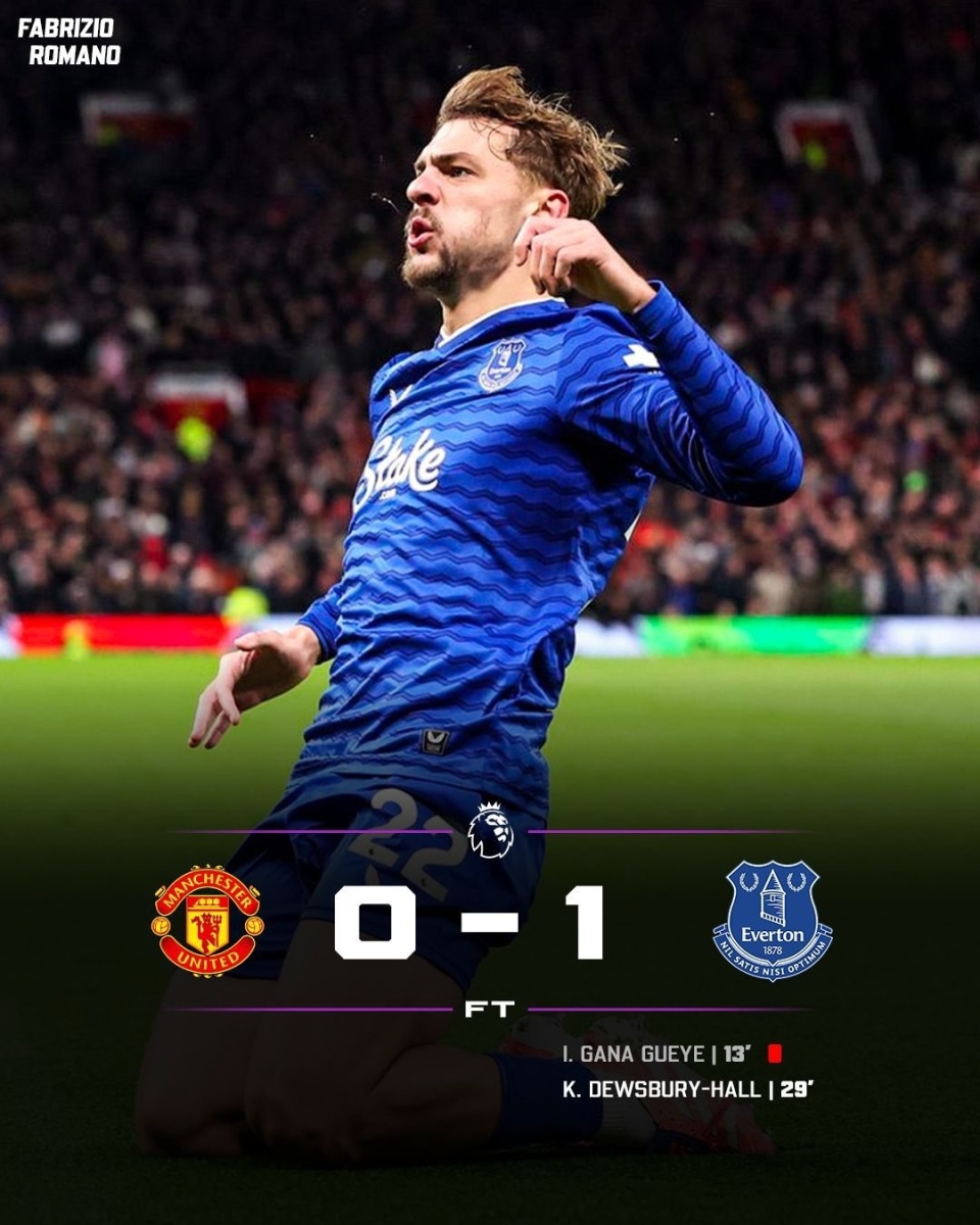 此后剩下的比赛中,曼联也始终没能进球。多尔古、阿马德、B费、齐尔克泽、姆贝莫轮番浪费绝佳良机,埃弗顿门神皮克福德则做出6次关键扑救,最终曼联在主场0-1告负。