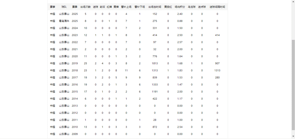 自2008年登陆中超后,他已活跃在联赛17个赛季,期间一直所属山东泰山,仅本赛季中途被租借到青岛海牛。效力海牛期间,他共出场8次,其中7次替补登场。