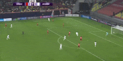第70分钟,韦世豪杀到弧顶前分球到禁区右侧,跟进的胡荷韬小角度打门,对手门将扑球失误,皮球稍稍偏出远端立柱。