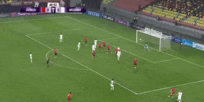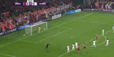 第50分钟,杨明洋头球传球,周定洋禁区内护球时被荒木隼人放倒,卡塔尔主裁第一时间判罚点球,VAR随后介入,主裁观看回放后坚持原判。第54分钟,费利佩主罚打入球门左下角,蓉城1-0领先。