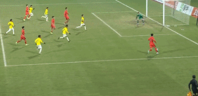 身体处于劣势的文莱球员频频倒地,这让上半场的补时多达8分钟。上半场补时第2分钟,张君豪底线横传,万项前点挑射破门,4比0!