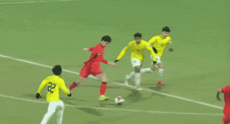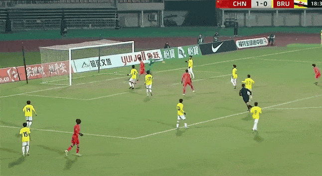 第39分钟,又是万项主罚左侧角球到门前,赵松源吸引防守注意力,后点的李铭杰头球攻门得手,中国队3-0领先。