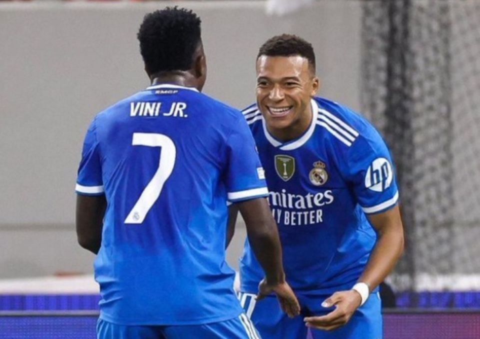 第22分钟,维尼修斯左路拿球,送出一记漂亮的传球,帮助姆巴佩拿到单刀。面对出击的门将,法国人一脚爆射破门,1-1!