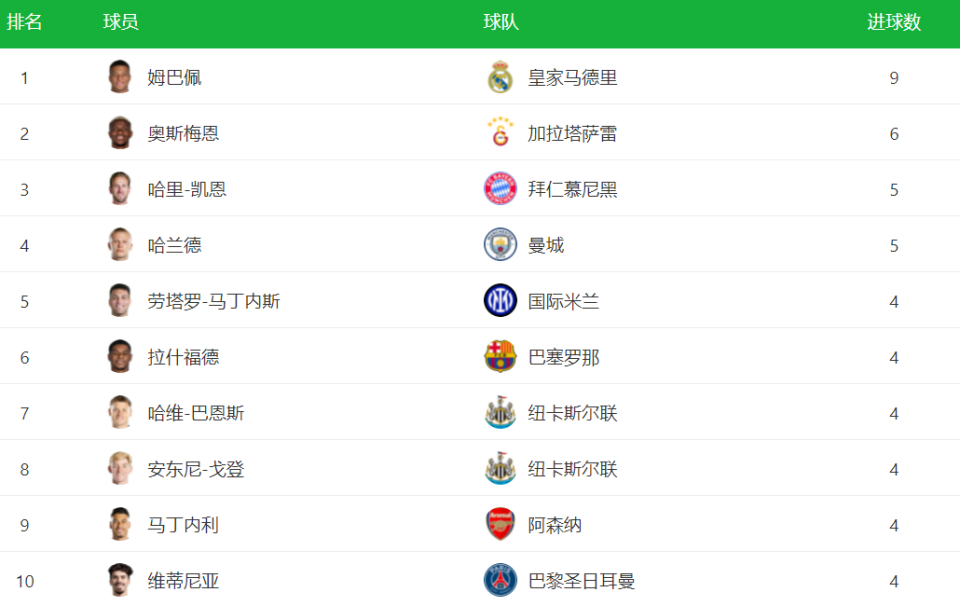 欧冠射手榜大变,1.8亿锋霸升第1,哈兰德凯恩都被甩开