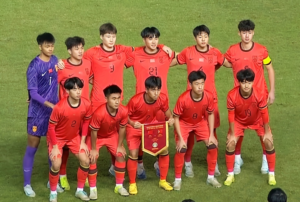 U16国足首发:1-秦子牛、2-金峰、4-南子勋、5-李钧鹏、8-张旭尧、14-张君豪、7-周雨诺、10-邝兆镭、15-孔玺诺、 21-帅惟浩、20-赵松源!