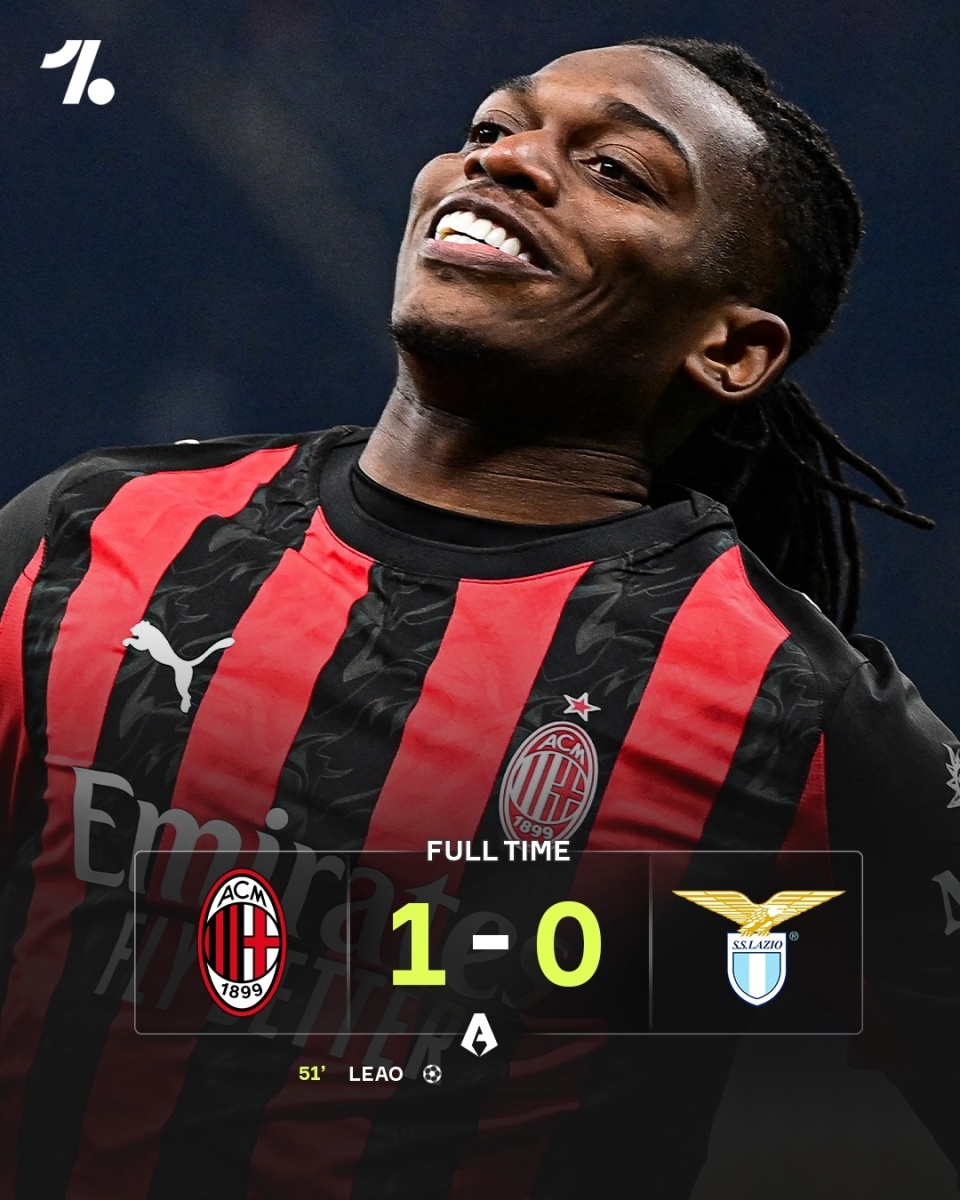意甲第13轮,AC米兰主场1-0战胜拉齐奥,联赛12轮不败,先赛一场暂1分优势领跑。迈尼昂贡献神扑,托莫里助攻莱奥破门,补时阶段阿莱格里染红。