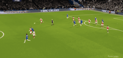 第59分钟,萨卡下底后虚晃一枪传中,梅里诺再次完美完成中锋的角色,头槌破门。