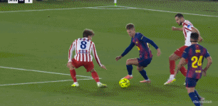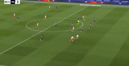 第26分钟,佩德里直塞,拉菲尼亚前插形成单刀,盘过奥布拉克推射入空门,1-1。