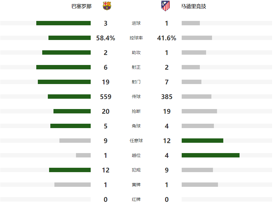 北京时间12月3日凌晨,西甲第19轮中,巴萨主场3-1逆转马德里竞技,拿下联赛五连胜,领先少赛1场的皇马4分稳坐榜首,马竞终结联赛6连胜。巴埃纳先拔头筹,拉菲尼亚与奥尔莫连入两球反超,莱万错失点球后献助攻,费兰-托雷斯补时破门。
