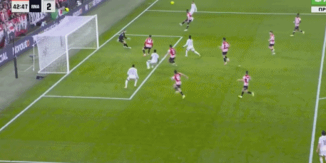 贝林厄姆禁区前沿斜传,巴尔韦德巧妙一漏,阿诺德右路插上传中,姆巴佩门前头球摆渡,卡马文加接力破门,2-0!