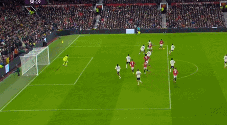 比赛第58分钟,曼联前场禁区内形成围攻,球转移到外围,曼联球员一脚似射似传的大力抽球,直接给到了禁区内的达洛特,达洛特停球很稳,而且顺势打门球进,1-0,曼联领先了!