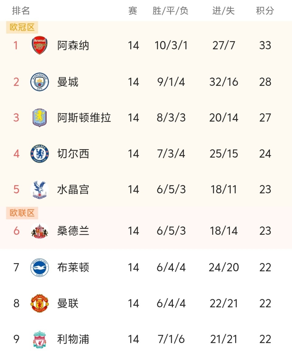 随着曼联1-1被绝平,阿森纳、曼城赢球,英超最新积分榜出炉!