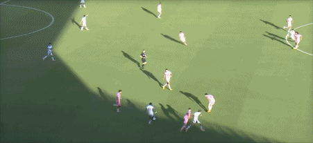 第8分钟,梅西右路摆脱分球,队友直传,阿连德禁区右侧传中造成奥坎波乌龙,1-0!迈阿密国际取得领先。